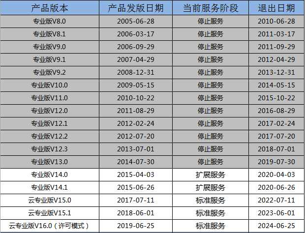 金蝶公司建议您使用或升级到功能更丰富、产品体验更佳的最新版本,从而让我们能够继续为您提供高水平的服务。表2是我们向您建议的我公司目前仍在提供支持的版本。